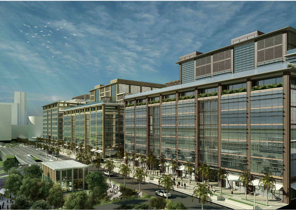 Project involves construction of a 3 towers comprising of 2 basement levels, a ground floor, a mezzanine floor, 8 parking levels, 48 additional floors and a roof. The development is spread across 118,000 square meters